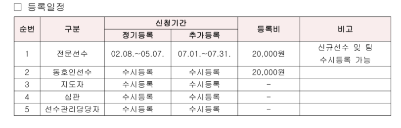 선수등록 방법 및 안내사항은 첨부자료 확인 바랍니다.