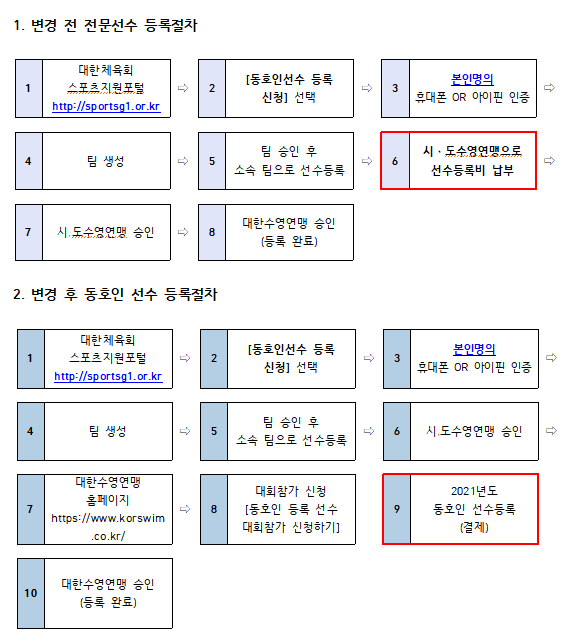 | 2021년도 경기인 등록일정 안내 (전문선수, 동호인, 외국국적 및 유학생) (0) | 2021.01.28 |
